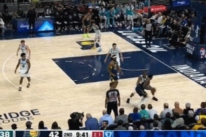 技惊四座!赫夫虚晃后突破 直接单臂滑翔隔扣卡尔克布伦纳!