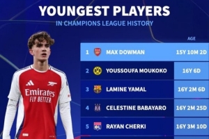 欧冠历史最年轻出场球员排行:道曼居首,穆科科、亚马尔二三位